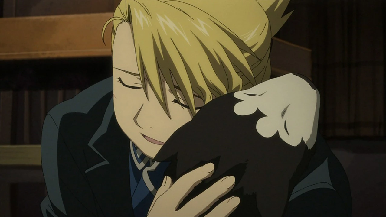 Black Hayate - A very strict mistress, Riza trains Black Hayate to be a very well-disciplined dog. Hayate is clearly a useful and valuable companion, and they share a very deep loyal bond. Hayate has a profound love for his mistress, jumping to save her in dangerous situations. While in the presence of Hayate, we are shown a more domestic, intimate side of the infamous "Hawk's Eye".